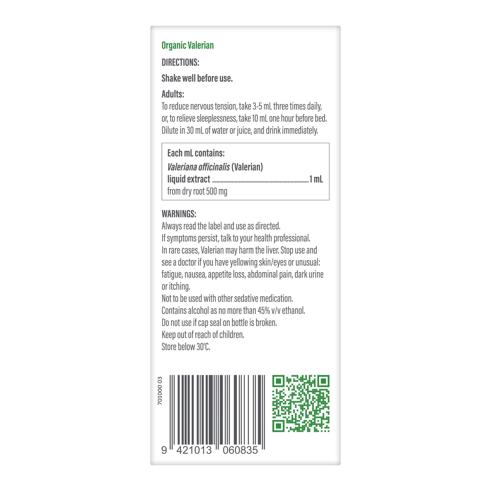 Organic Valerian can be taken during the day to calm tension or before bed to aid a good night's sleep.
